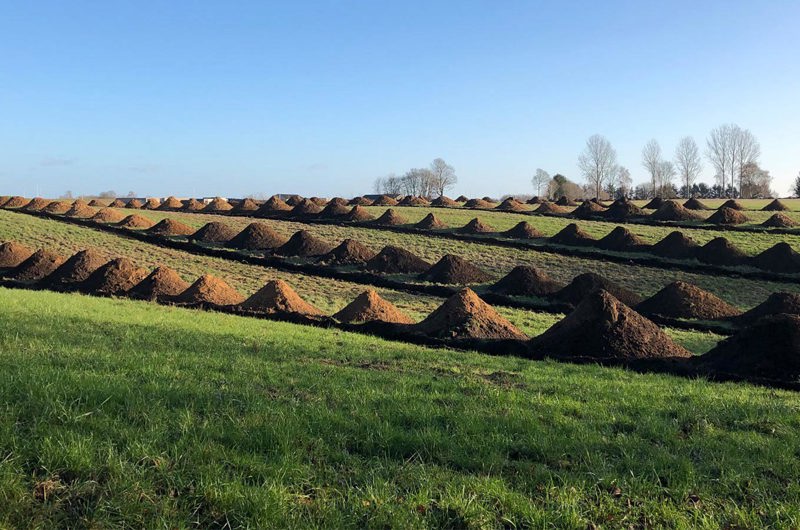 Horsens Museum foretog en forundersøgelse hvor der blev fundet et flækkesegl fra bondstenalderen indlejret i brun marin-brak tørv. Læs rapporten: Etape 1 og Etape 2. - Flintebakken Nord (HOM 2823)