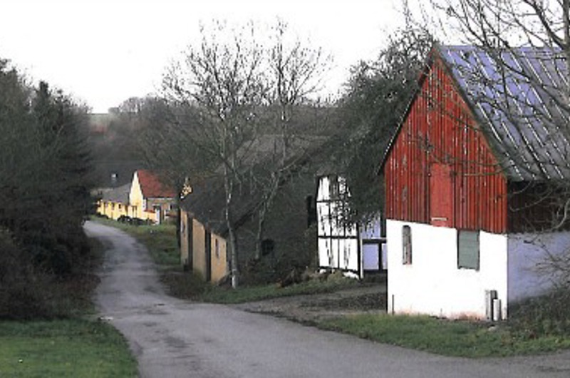 Gårdene ligger langs en lige bygade, indpasset i terrænet og følger en dalsænkning mod Vær Sø.